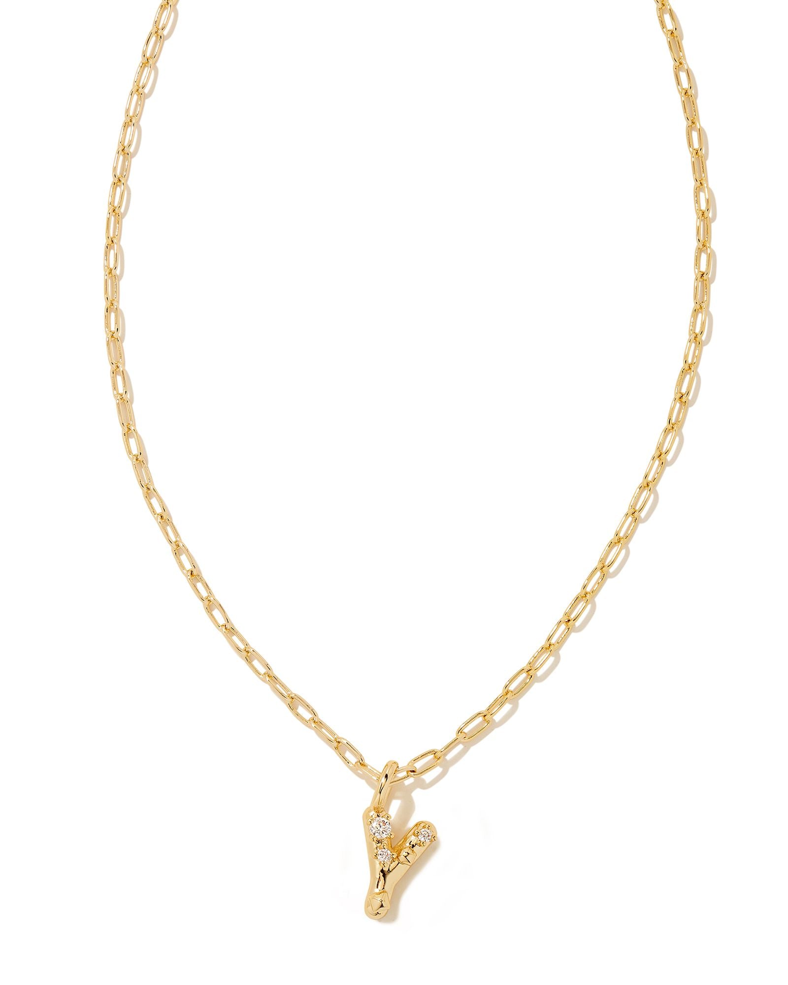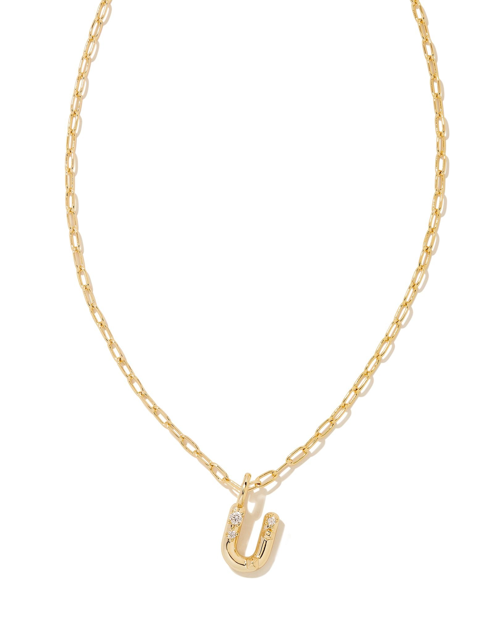 Crystal Letter Short Pendant Necklace Gold White CZ