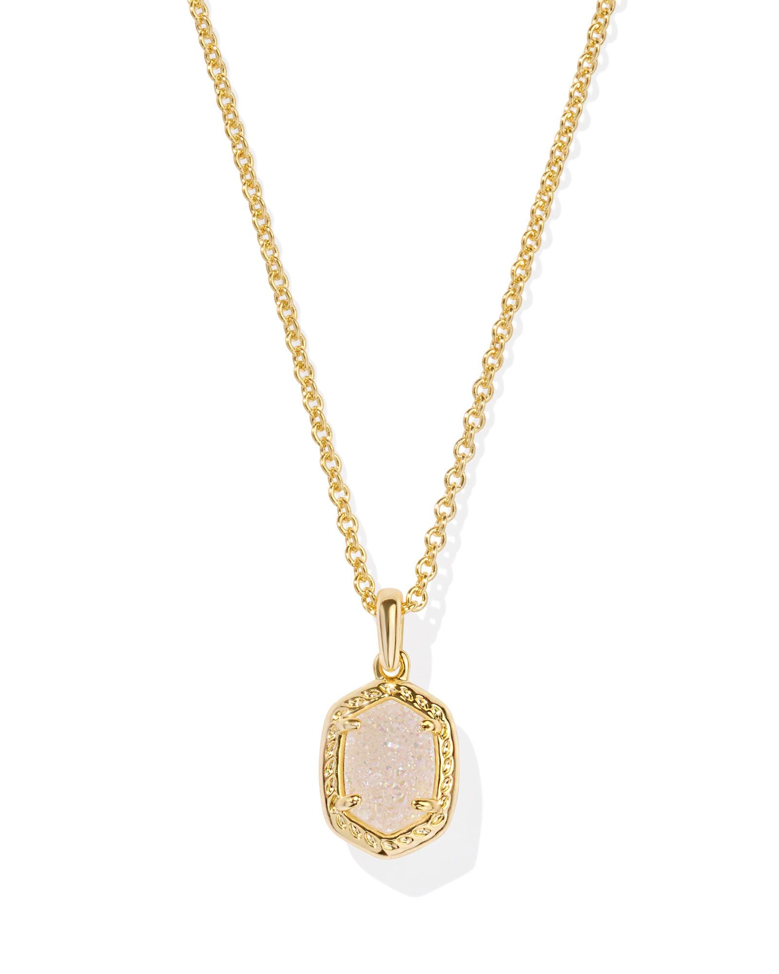 Daphne Pave Frame Short Pendant Necklace Gold Iri Drusy