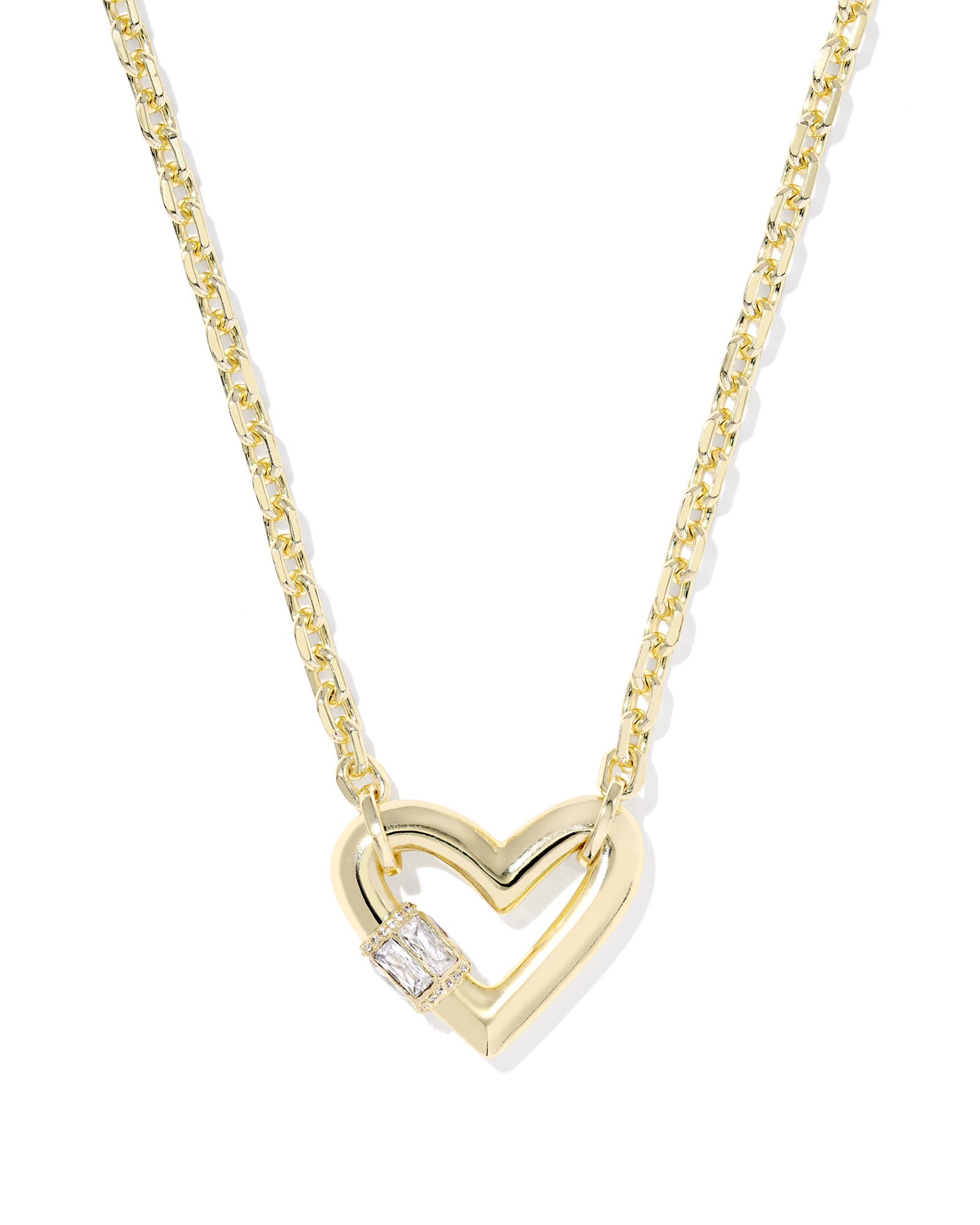 Show some love to your necklace stack with the Emery Heart Gold Short Pendant Necklace. Featuring a bold heart-shaped pendant—inspired by our bestselling Ari silhouette—studded with gorgeous baguette stones for extra sparkle, this necklace is a heartfelt take on the hardware jewelry trend.