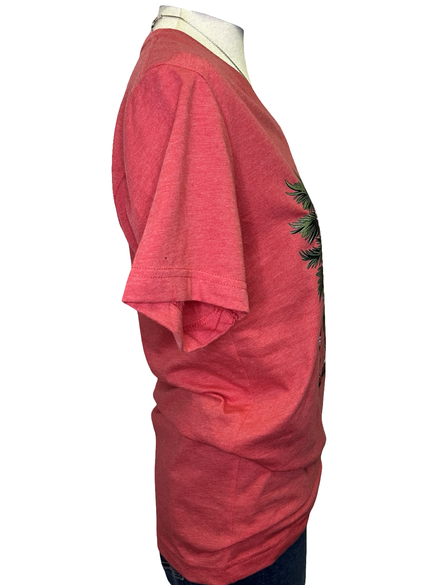 Grinchmas Vibes Heather Red V-Neck Tee Get ready to sleigh the season with this ultra-soft Bella+Canvas V-neck in heather red, featuring the one and only Grinch spreading his unique brand of holiday cheer. With a mischievous grin and a Christmas tree in hand—decked out in dangling ornaments—this tee brings playful Grinchmas vibes to life.
