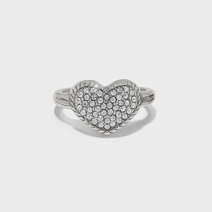 Wear your heart on your finger as an expression of love with this domed pave encrusted heart ring. The shape of the ring is designed to perfectly and comfortably wrap around your finger. A beautiful complement to the Celestia collection.