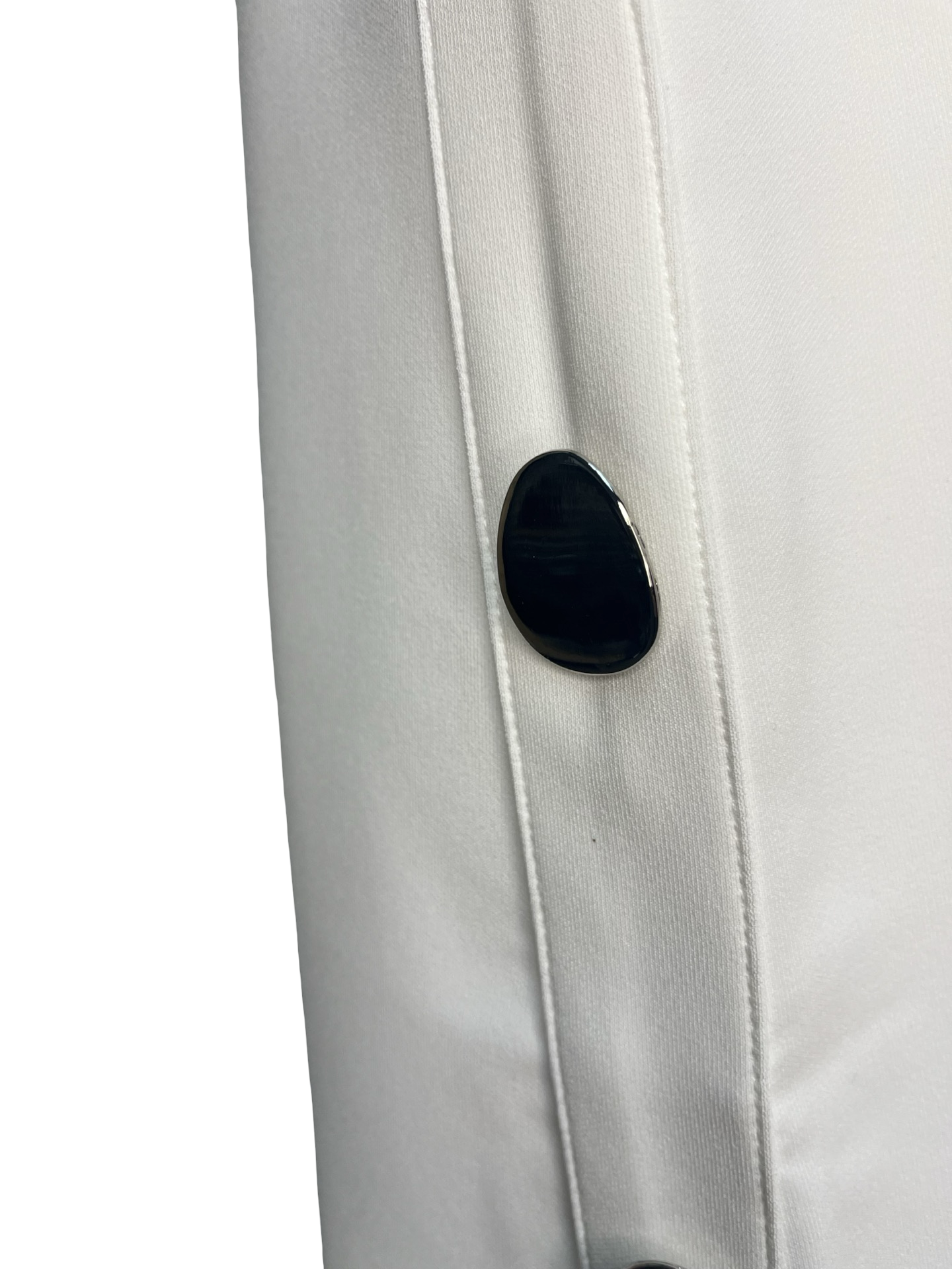 The dress features a must-have classic shift cut, offering a timeless appeal that never goes out of style. Its defining characteristic is the series of large, polished silver buttons adorning one side, adding a touch of contemporary flair and a subtle metallic accent that catches the light. This dress is perfect for the woman who appreciates refined style and practicality. It can be effortlessly paired with classic pumps and minimalist jewelry for a polished office look, or dressed up with statement earrings and heels for an evening out.