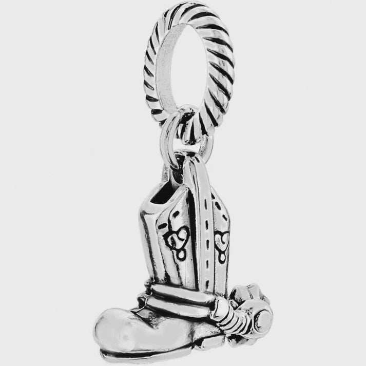 Spur your interest in the Lone Star State when you step out showing its charm! Shaped like a classic cowboy boot with spurs, this silver-plated charm will show you have your heart in Texas.