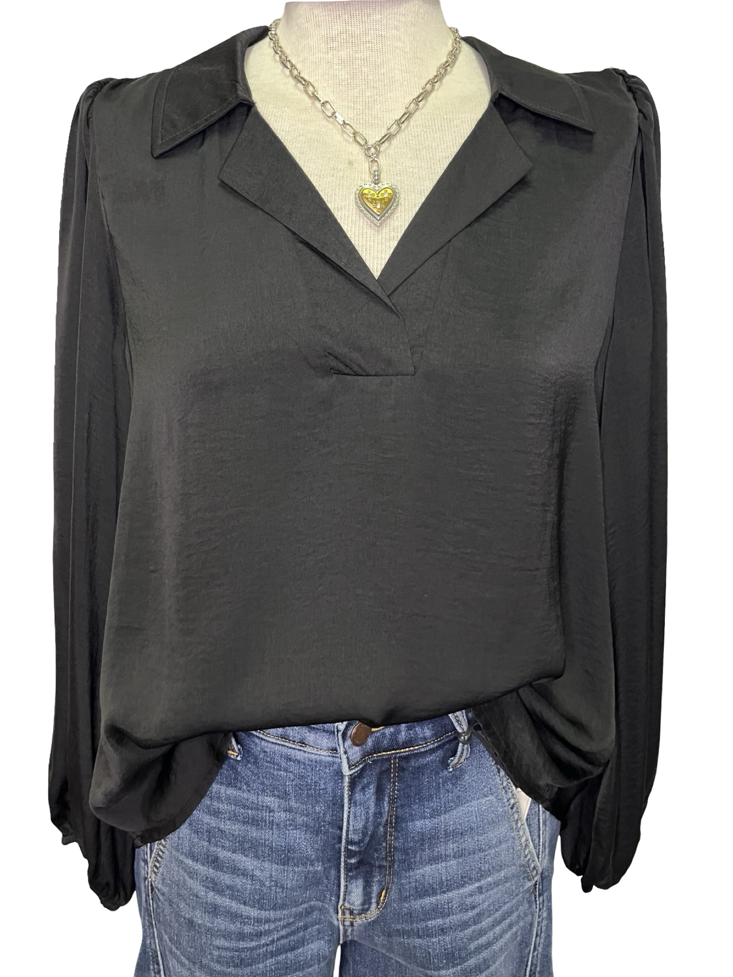 Elevate your everyday style with this chic and versatile Long Puff Sleeves V-Neck Top, crafted from 100% polyester for a lightweight, breathable feel. Designed with a collared neckline and a subtly textured solid fabric, this top blends timeless elegance with modern flair.