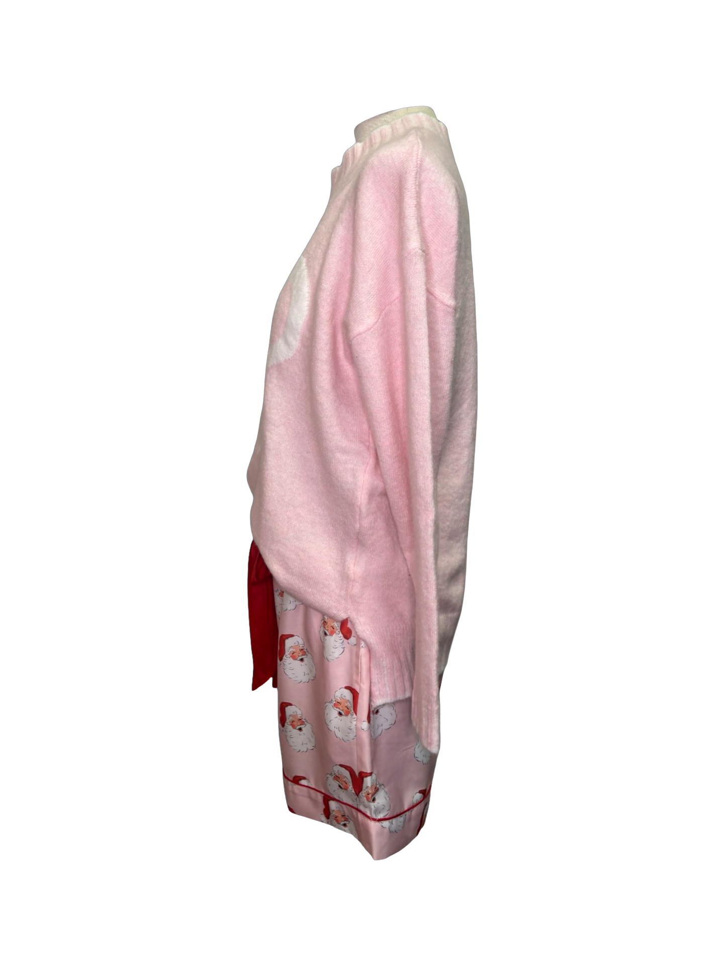 Heathered wool blend sweater features jacquard icon and contrast stitching at ribbed neckline, sleeve openings and hem. Measures approximately 24 1/2" from shoulder to hem on size small.